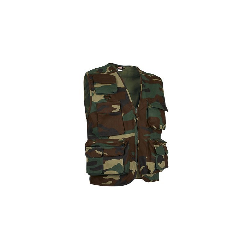Chaleco multibolsillos confeccionado en tejido sarga, resistente y duradero. Cuello abierto y cierre frontal con cremallera. Rejilla en la cara interior de la espalda para favorecer la ventilación. Nueve bolsillos diversos en frontal y dos bolsillos en la parte trasera. Incluye anilla en pecho derecho. La prenda apropiada para tener todo a mano. Densidad 200 g/m