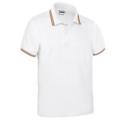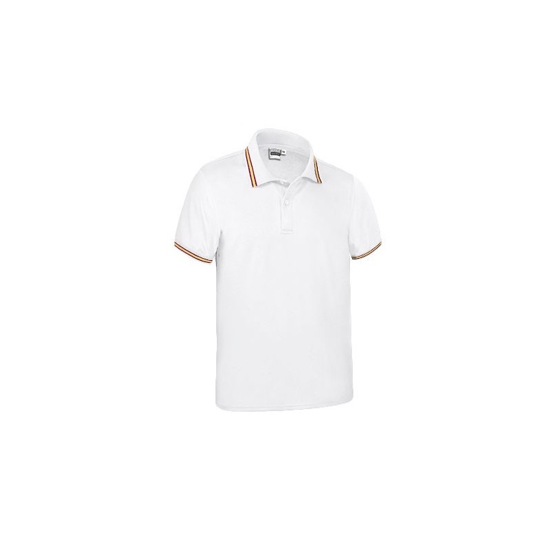 Polo técnico, confeccionado en tejido transpirable y de secado rápido. Cuello polo y bocamangas de tricotosa que incluyen un diseño con los colores de las banderas. Cierre con tapeta central y dos botones. Ideal para actividades físicas por su elevada capacidad de evacuación del sudor y por su alta resistencia. ¡Elige tu bandera preferida!. Densidad 170 g/m