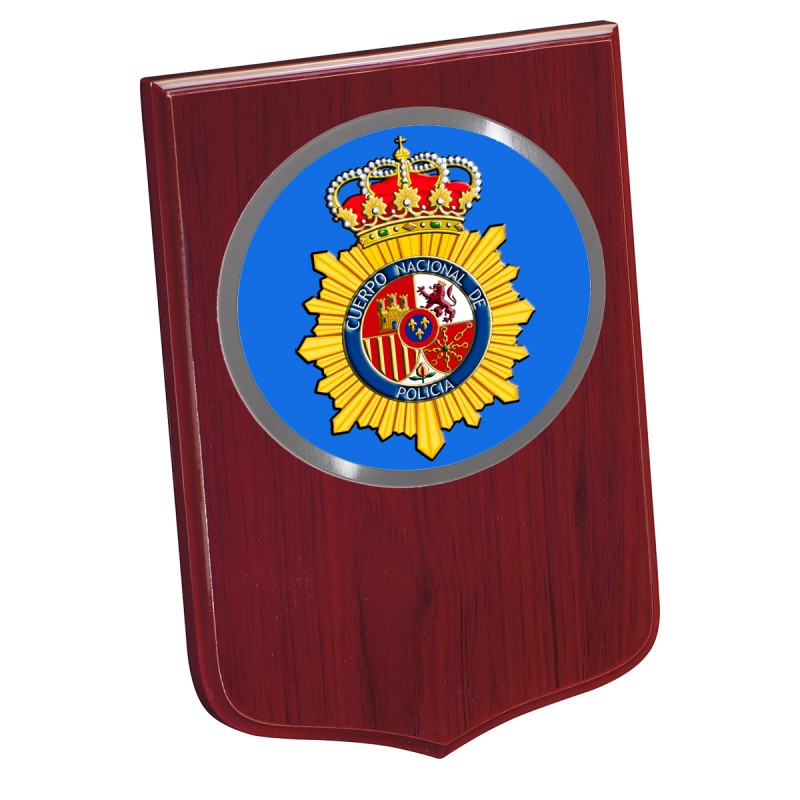 Metopa Madera Mini 190x135mm Con Chapa Policia Azul