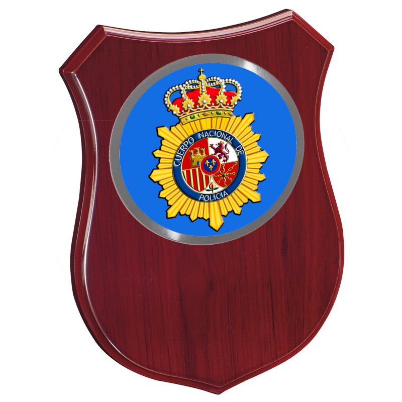 Metopa Madera grande con Forma y con Chapa 295 x 200 mm Policia Azul